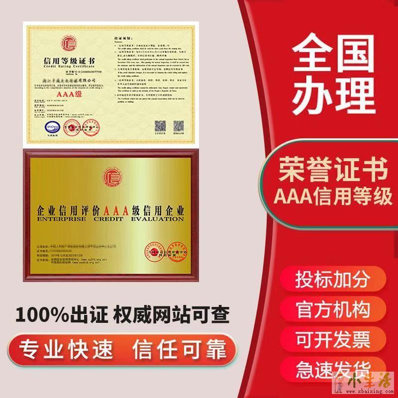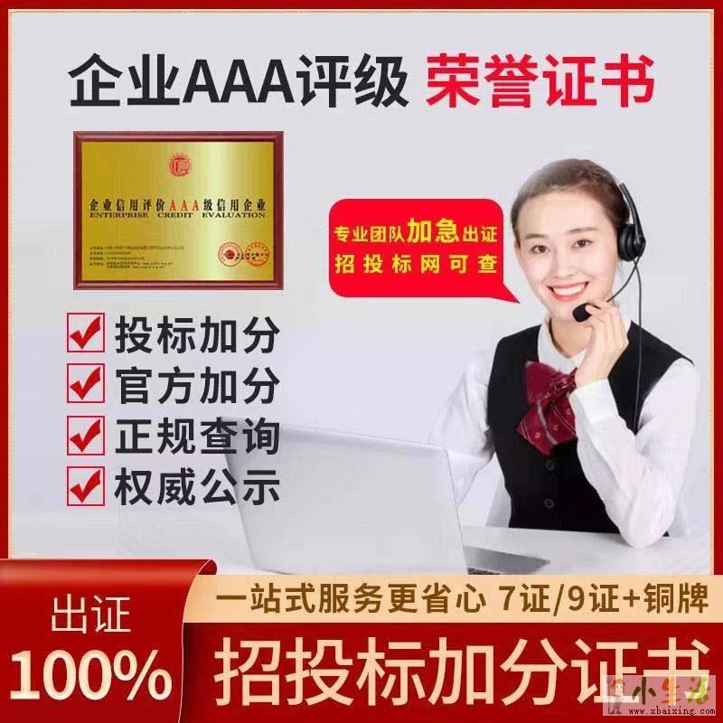 专业办理《企业信用AAA等级证书》《企业资信等级AAA证书》《诚信经营示范单位AAA荣誉证书》《质量服务诚信单位AAA证书》