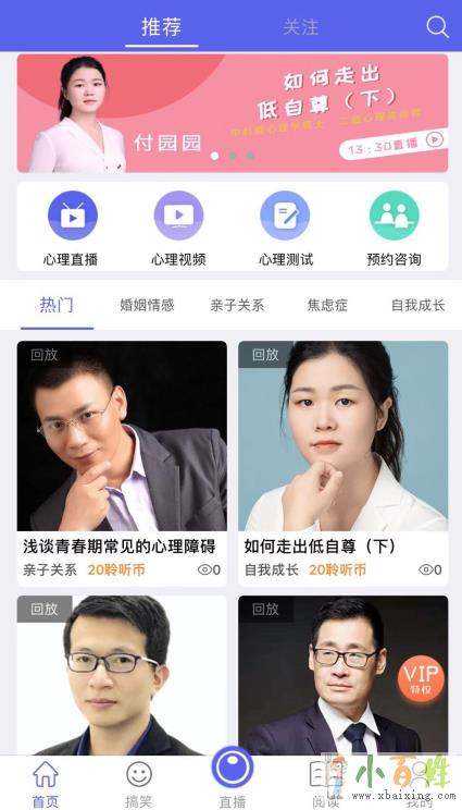 另外,小娜介绍,聆听之心app上还有直播频道,有专业心理咨询师分享包括婚姻情感、亲子教育、职场压力、家庭关系、情绪疏导、自我成长等经验,用户可与咨询师互动、连麦,以解决自己的问题x b a i x i n g c o m。