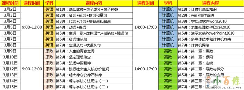 一、公共课免费直播:3月2日-15日,每天6小时上午9-11点,下午14-17点英语、计算机、思政、高数科科都有,边学边练,巩固提升http://19.offcn.com/class-107617/?...